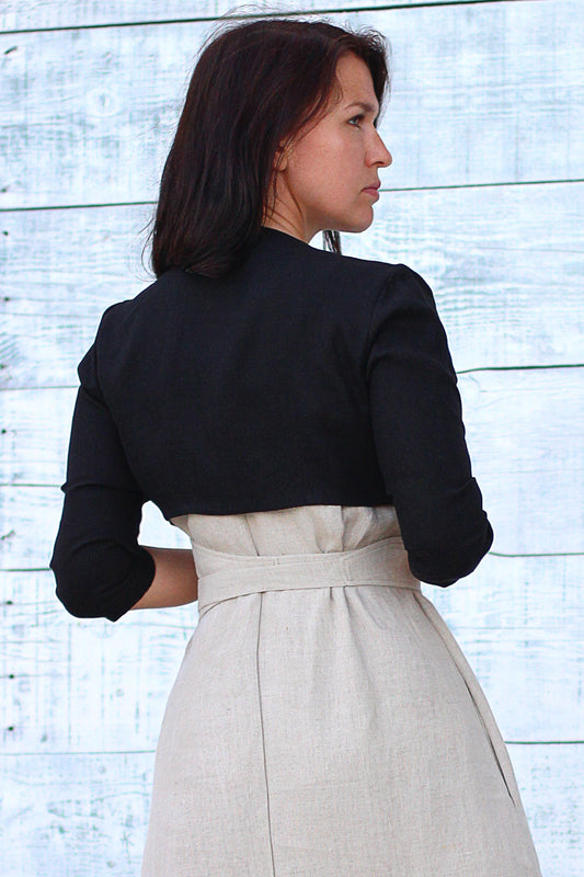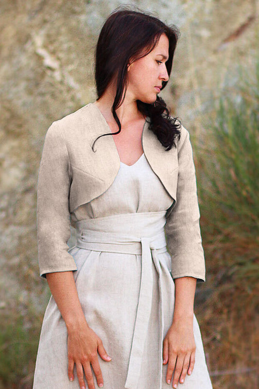 Bolerka přes šaty od české značky Lotika. Prémiové lněné a konopné látky přináší jemnost a udržitelnost do vašeho šatníku.