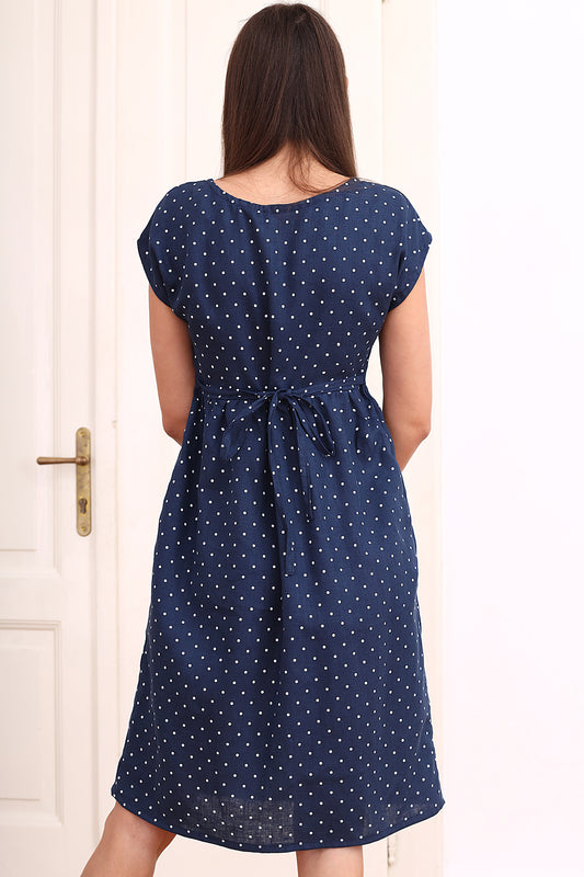 Lněné šaty s puntíky