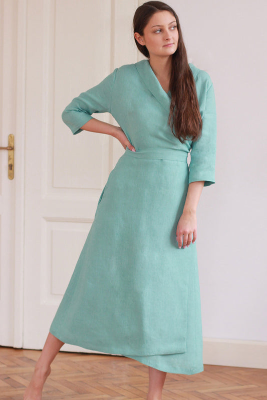 Dlouhé konopné šaty zavinovací