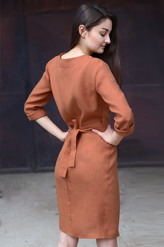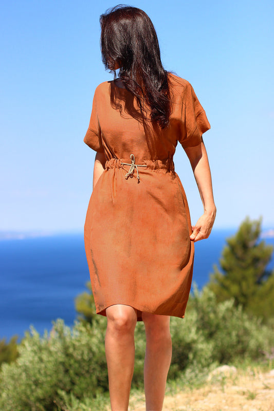 Letní lněné šaty na zavazování