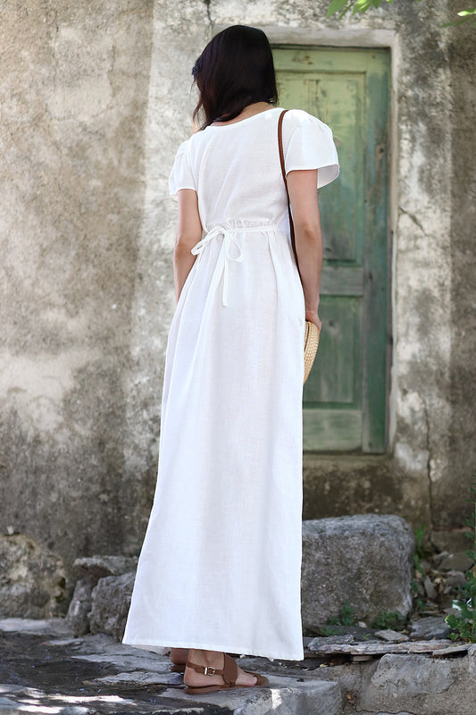 Lněné romantické maxi šaty