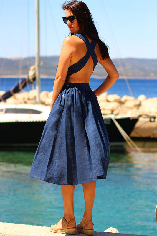 Lněné šaty s odhalenými zády